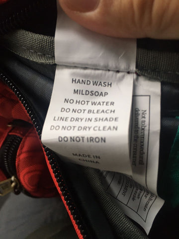 To begin, please follow our manufacturer’s cleaning label located inside the main compartment of your backpack. In general, you can follow these guidelines: